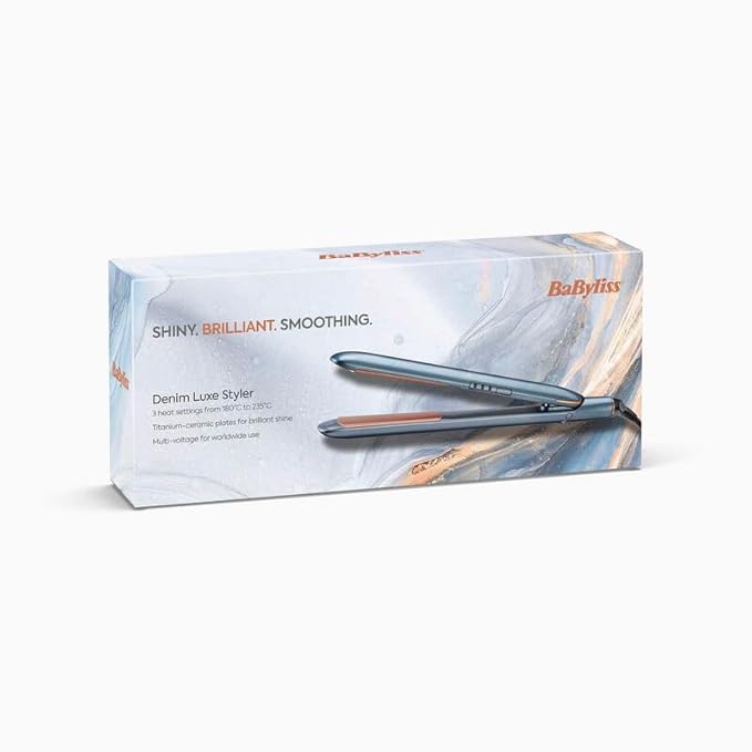 BaByliss hair straightener with titanium ceramic plates heats up to 235c with fast heat up three digital temperature settings 180c 200c and 235c multi voltage support worldwide usage curved housing design made in china