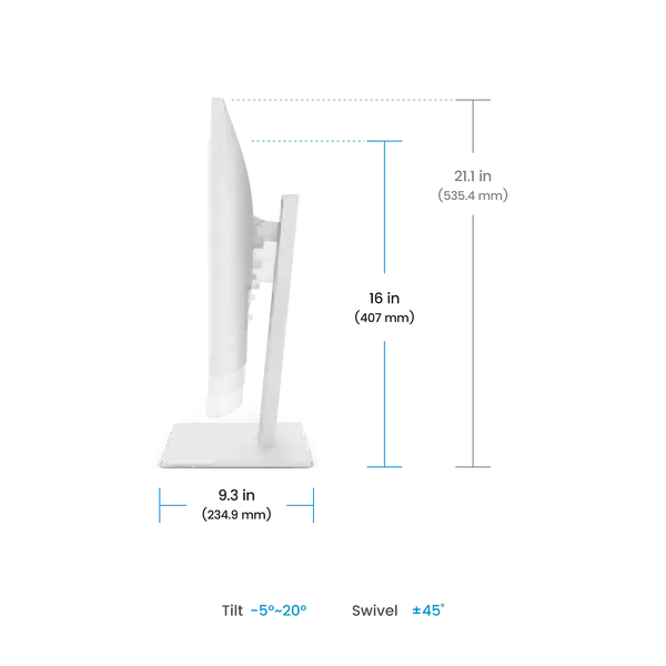 Features: Eye-Care Technology, Low Blue Light, Flicker-Free, Noise-Cancelling Microphone, Built-in Speakers, Height Adjustment, Tilt & Swivel Stand