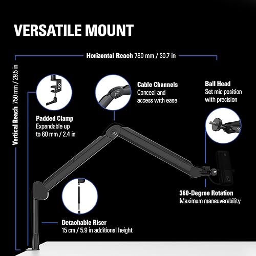 Corsair Wave Arm LP low profile microphone arm designed for clean desk setups smooth silent movement and stable support ideal for streaming podcasting and professional audio setups