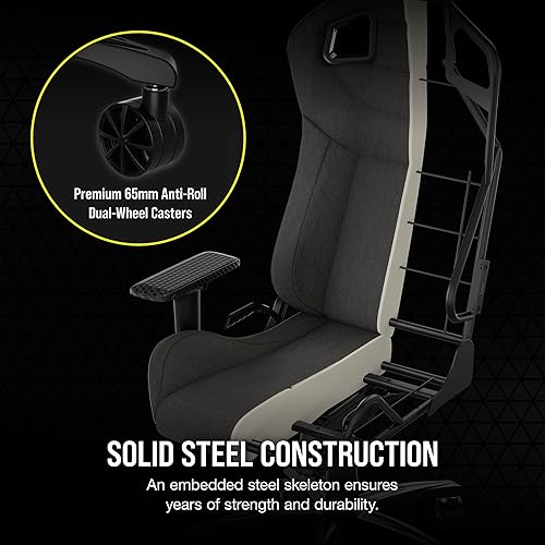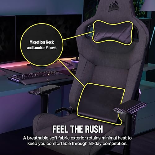 Game in comfort for long hours with the Corsair T3 Rush 2023 Fabric Gaming Chair in charcoal color Designed with breathable soft fabric ergonomic lumbar and neck support and a sturdy steel frame this premium gaming chair delivers superior comfort durability and style for gaming streaming and office use