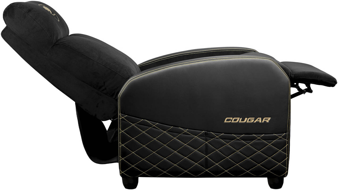 COUGAR Ranger Elite Gold Gaming Sofa Black Gold is designed for premium comfort during extended gaming and entertainment sessions. Featuring a breathable velvet fabric surface, adjustable reclining design, and a convenient side storage pocket, it supports up to 135 kg while delivering a luxurious and ergonomic seating experience.