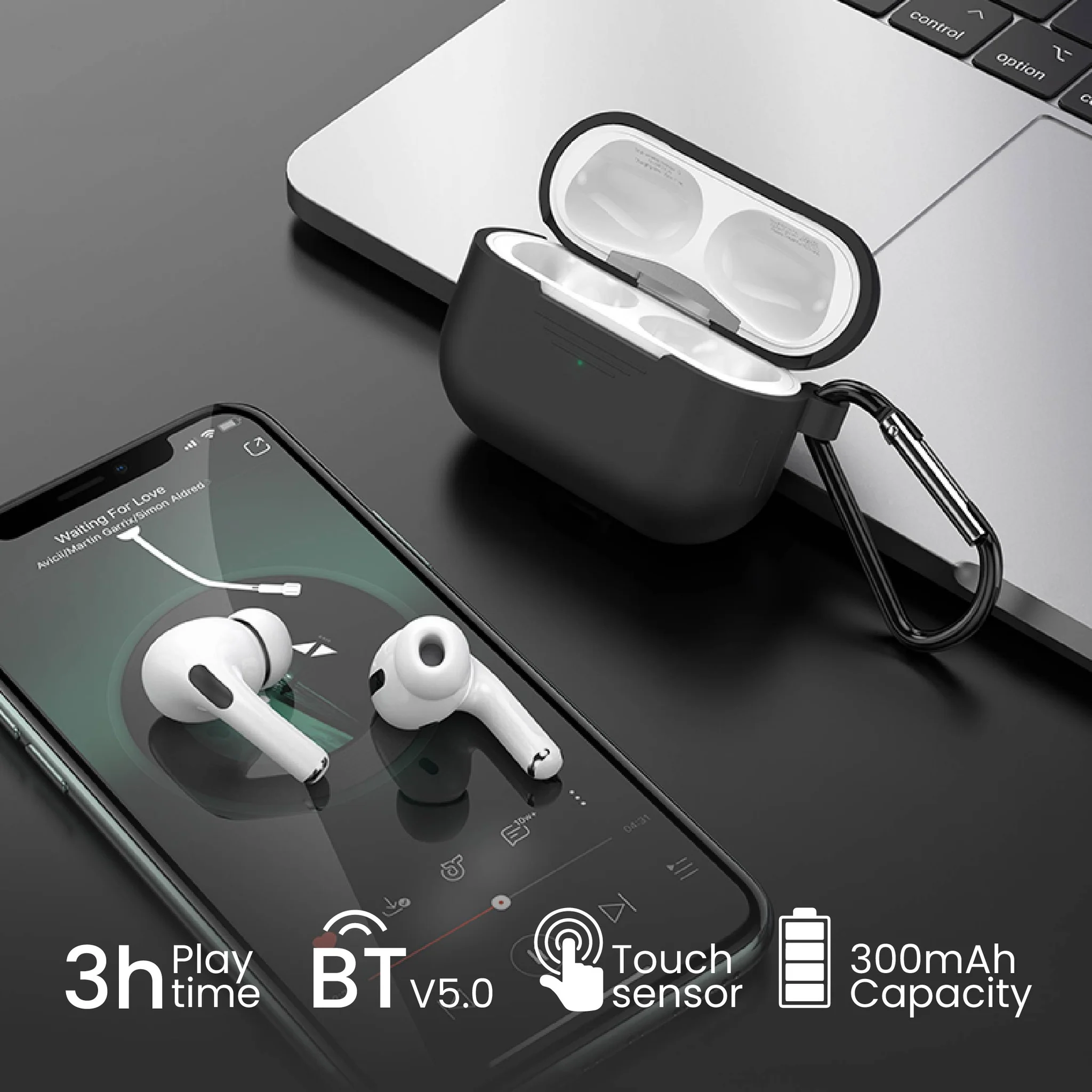 Features: Pro Series Audio, Clear Sound Quality, Built-in Microphone, Compact Charging Case, Portable Design