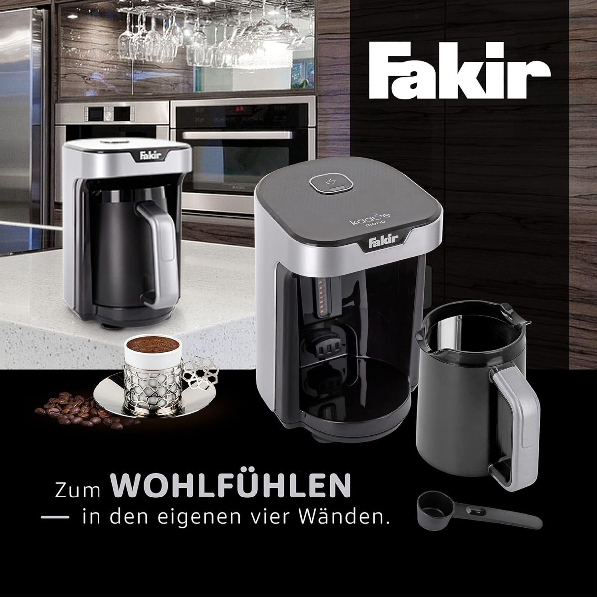 FAKIR Kaave Base Turkish Coffee Maker 535W is designed to prepare authentic Turkish coffee with ease and safety. Featuring Luminasense technology to prevent overflow, a sound and light warning system, and protection against dry operation, it ensures reliable and mess-free brewing. With a 4-cup coffee capacity, single-button operation, and compact design, it is ideal for everyday home use.
