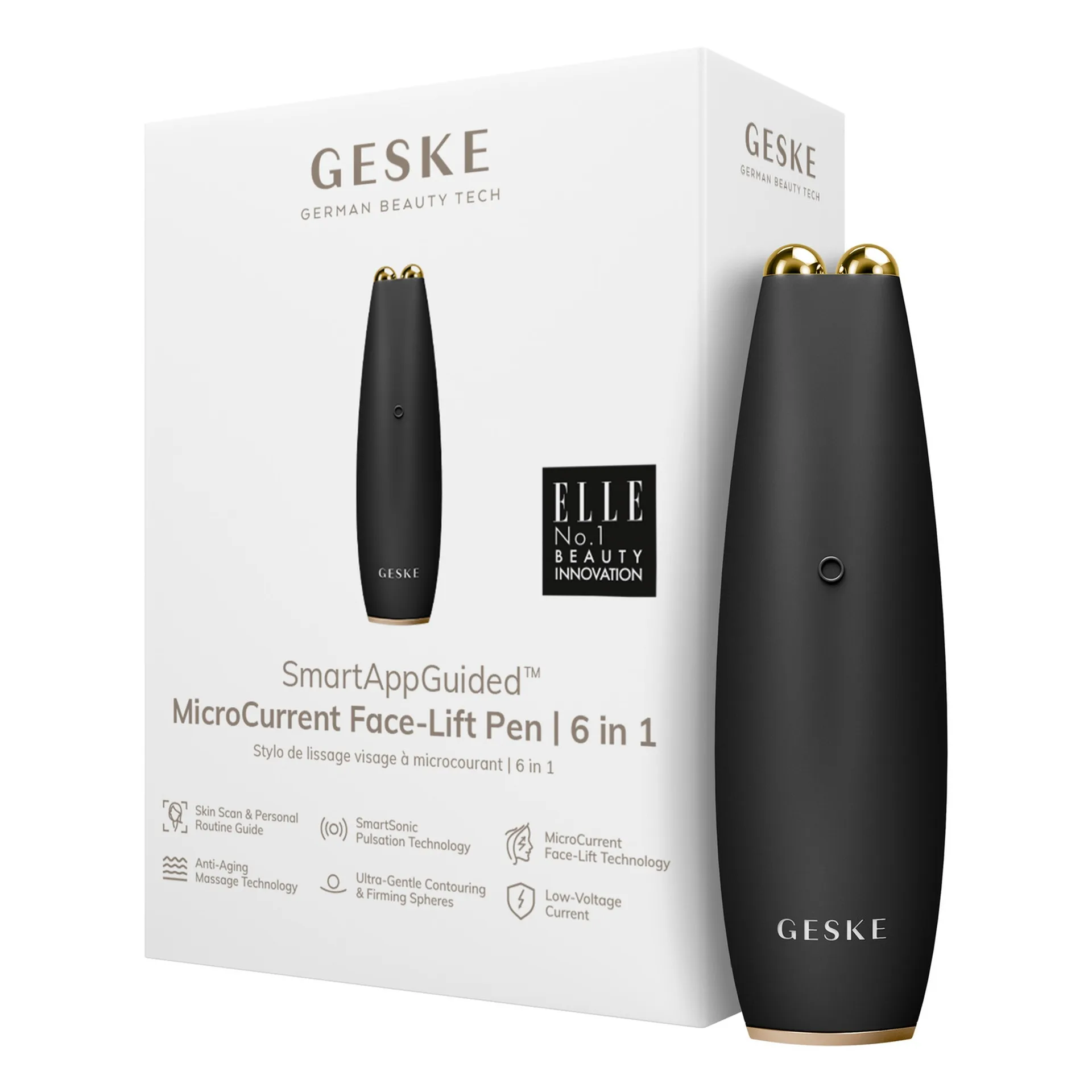 GESKE MicroCurrent Face Lift Pen 6 in 1 in Gray delivers precise facial lifting and toning using advanced microcurrent technology. It helps reduce fine lines improve skin firmness and enhance facial contours for targeted skincare results at home.