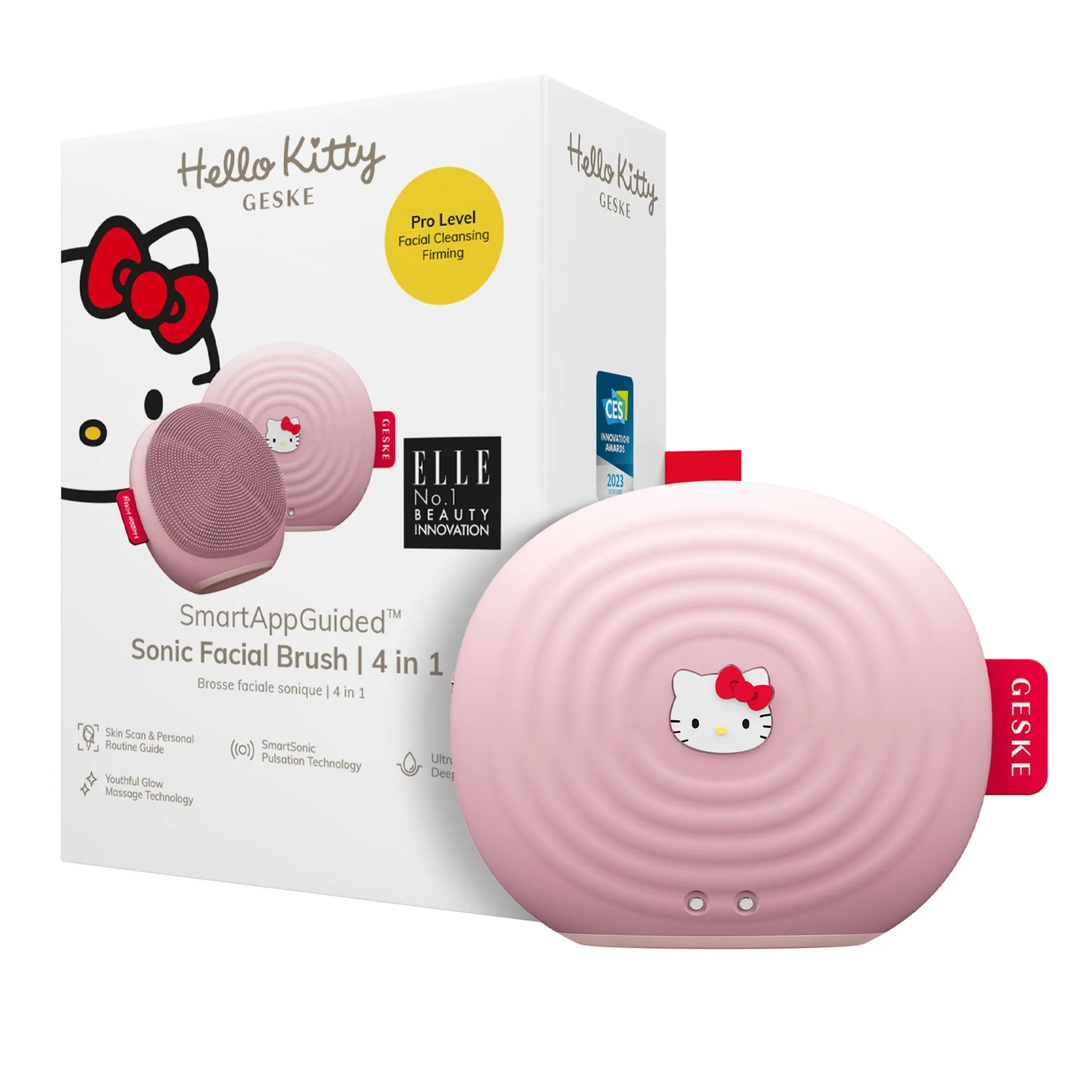 GESKE Sonic Facial Brush Hello Kitty 4 in 1 in HKPINK is designed for gentle yet effective facial cleansing using sonic technology. It helps remove dirt oil and makeup residue while improving skin texture making daily skincare fun and effective.