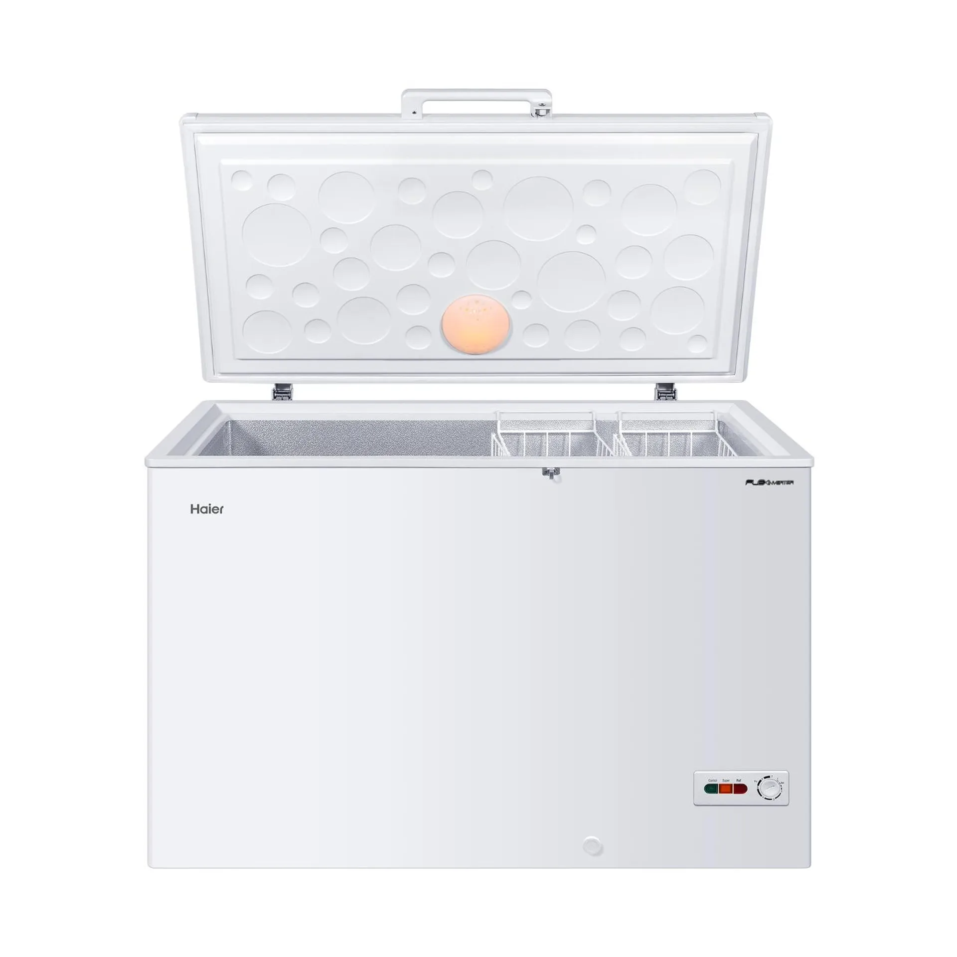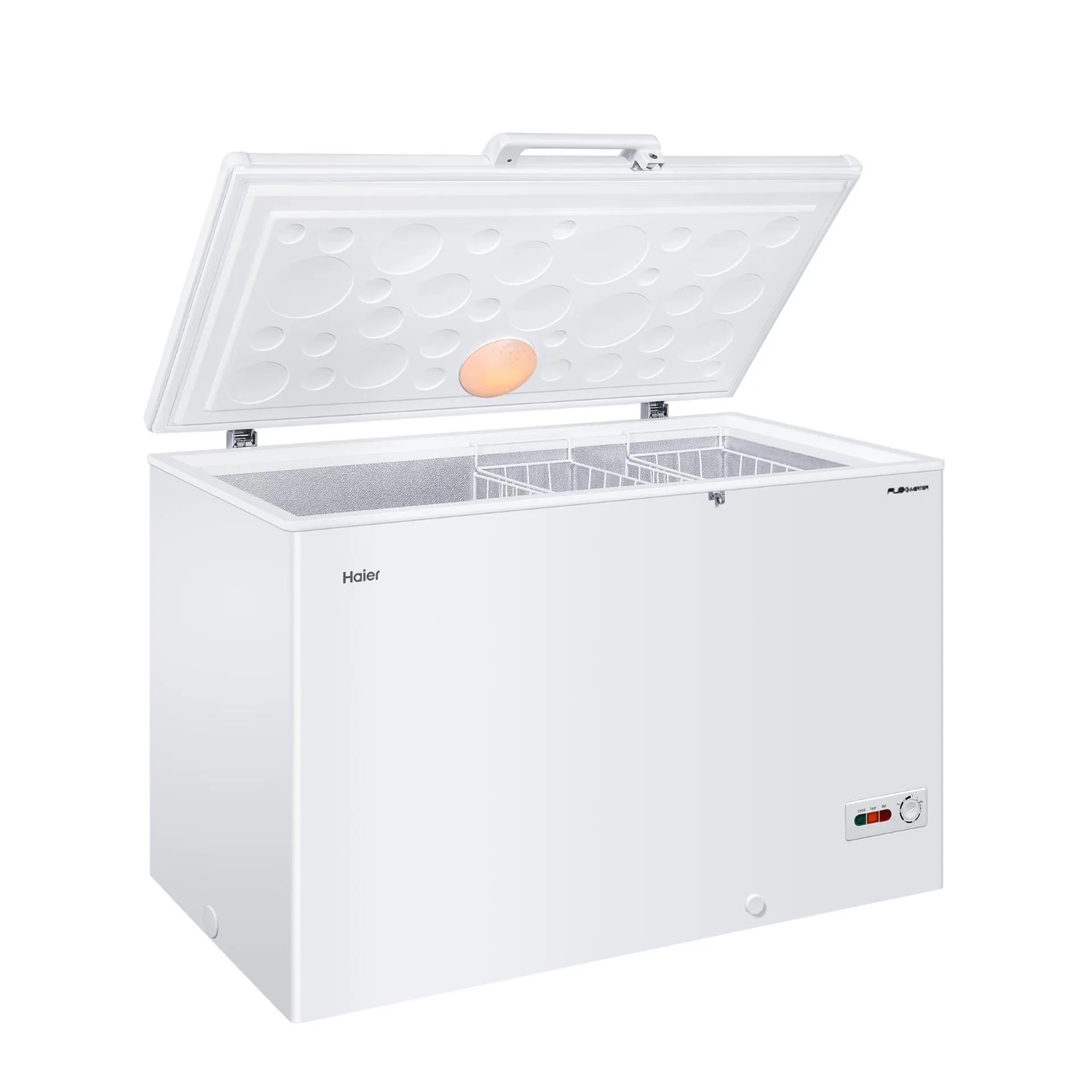 Haier HCF-590V 590L Chest Freezer delivers extra-large freezing capacity, powerful cooling performance, easy-open lid with baskets, energy-efficient operation, and a clean white finish — perfect for homes, supermarkets, shops, cafés, restaurants, and commercial use in Qatar.