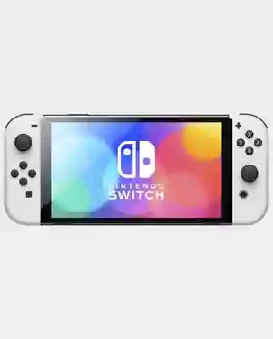 The Nintendo Switch OLED White Console features a stunning 7-inch OLED display, enhanced audio, and a sleek white finish. With hybrid play modes, enjoy seamless gaming at home on your TV or on the go in handheld and tabletop modes.