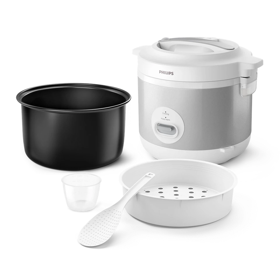Philips HD3008/30 is a user-friendly rice cooker ideal for home kitchens. It cooks fluffy rice for up to 10 people, supports cooking, steaming and keeping warm, and features a durable nonstick pot and 3D heating for even results.