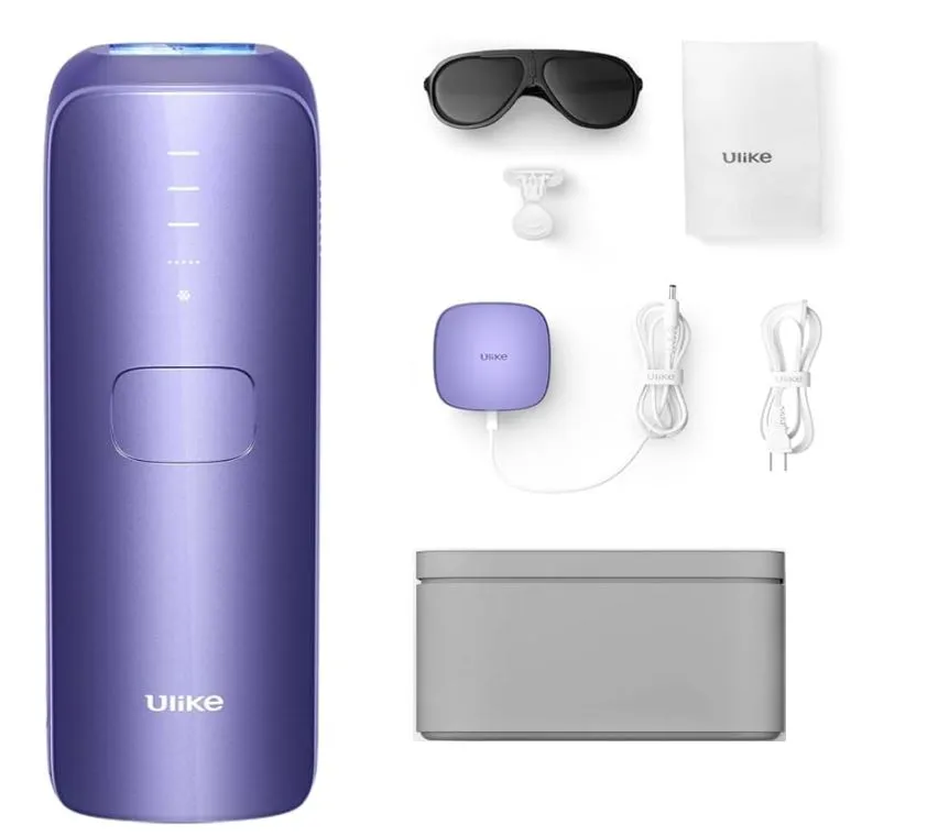 ULIKE Sapphire Air 3 IPL Hair Removal Device with Leather Case in Purple features sapphire cooling and advanced IPL technology for effective and comfortable hair removal at home. It helps reduce hair growth protect skin during treatment and includes a premium leather storage case for safe keeping.